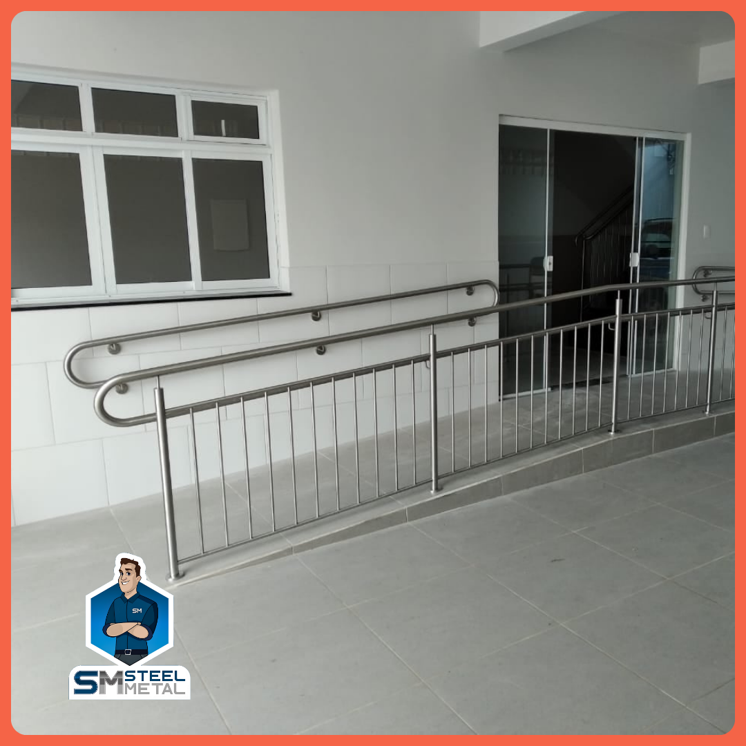 Projetado para ambientes modernos e funcionais, este corrimão em aço inox com varetas é ideal para rampas e corredores com alto fluxo. Oferece segurança, acessibilidade e um visual leve e contemporâneo. Excelente escolha para edifícios corporativos, escolas, clínicas e espaços que exigem durabilidade com design sofisticado.