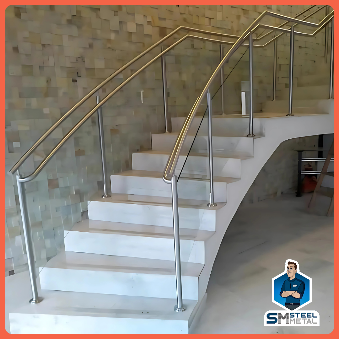 Corrimão curvo em inox – Perfeito para escadas em “L”, “U” ou circulares.